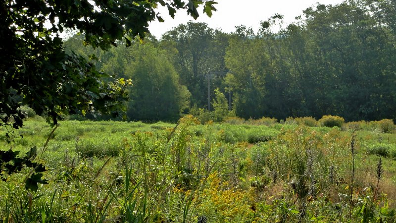 The hayfield looking ESE already promises heat as the dew lifts this morning.